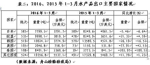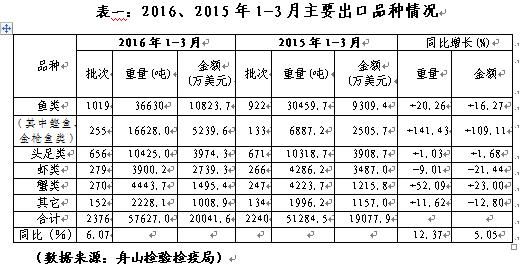 “十三五”規(guī)劃開(kāi)局之年的開(kāi)局之季,2016年1-3月舟山市水產(chǎn)品對(duì)外貿(mào)易迎來(lái)了開(kāi)門(mén)紅,出口批次、出口量及出口額全線飄紅,一舉扭轉(zhuǎn)了2015年下降態(tài)勢(shì)。
