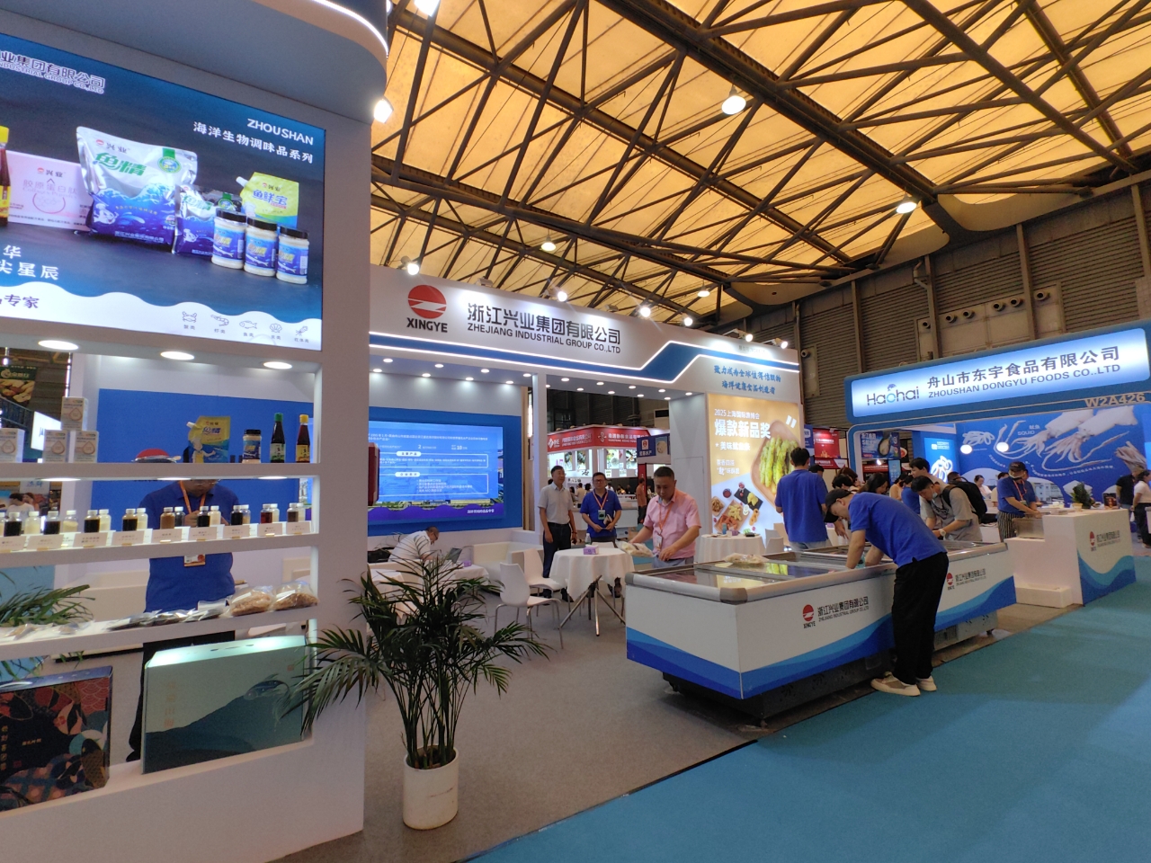 陳國(guó)強(qiáng)副會(huì)長(zhǎng)先后走訪了多家來(lái)自舟山的漁業(yè)企業(yè)展位,深入了解企業(yè)在產(chǎn)品研發(fā)、市場(chǎng)拓展、出口貿(mào)易等方面的最新動(dòng)態(tài),并與協(xié)會(huì)理事單位浙江興業(yè)集團(tuán)有限公司的展位負(fù)責(zé)人進(jìn)行了深入交流。興業(yè)集團(tuán)本身實(shí)力雄厚,是國(guó)家高新技術(shù)企業(yè),農(nóng)業(yè)產(chǎn)業(yè)化國(guó)家重點(diǎn)龍頭企業(yè),全國(guó)農(nóng)產(chǎn)品加工業(yè)出口示范企業(yè)。興業(yè)集團(tuán)已連續(xù)3年參加上海漁博會(huì),通過(guò)這一國(guó)際性平臺(tái),興業(yè)集團(tuán)成功吸引了大量國(guó)內(nèi)外采購(gòu)商的關(guān)注,獲得了穩(wěn)定的訂單增長(zhǎng),拓展了客戶資源,提升了品牌知名度。展會(huì)期間,興業(yè)集團(tuán)展示了多款優(yōu)質(zhì)水產(chǎn)品及創(chuàng)新加工產(chǎn)品,吸引了眾多專業(yè)買家駐足洽談,現(xiàn)場(chǎng)氣氛熱烈。