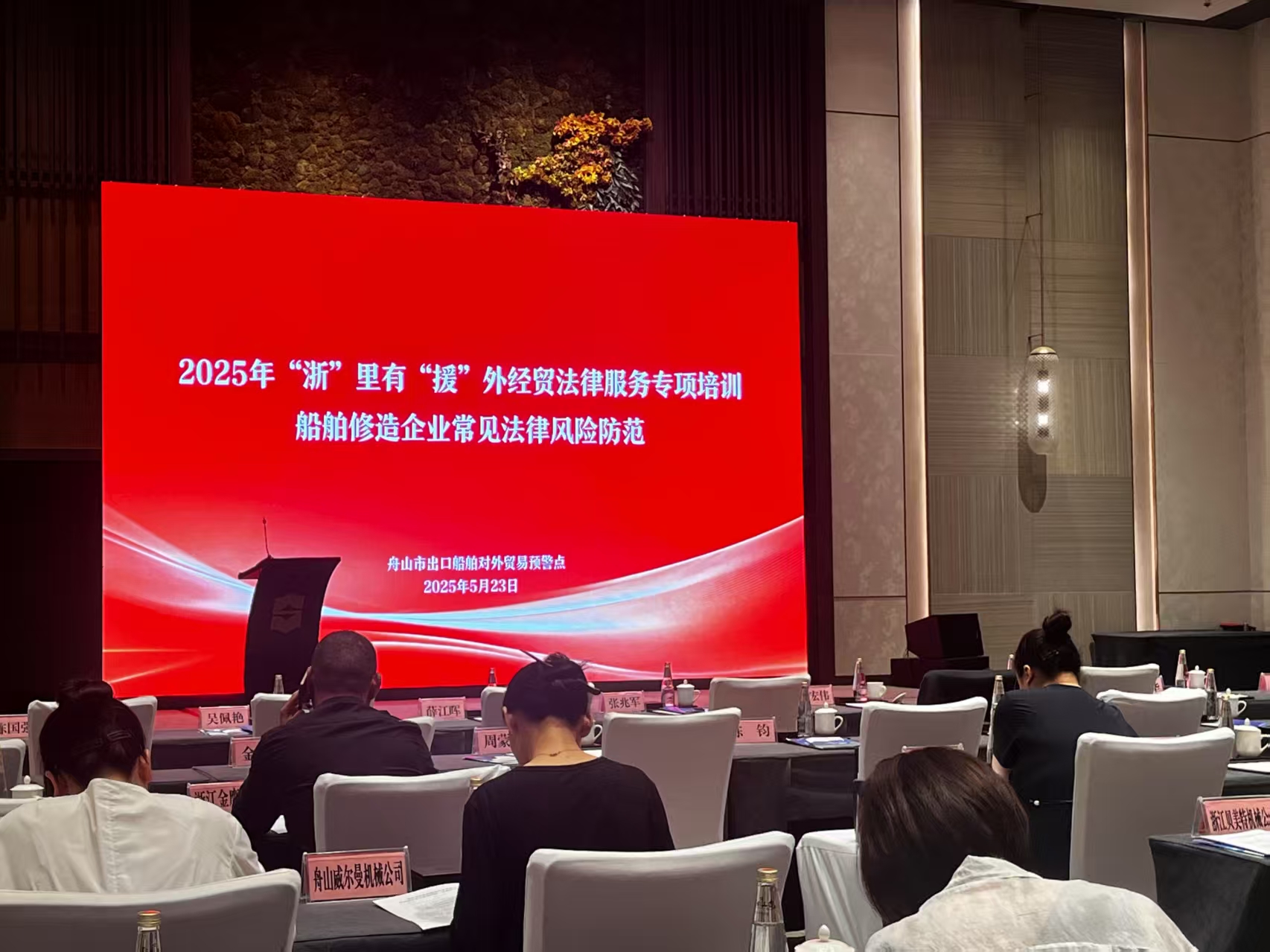 根據(jù)《浙江省商務(wù)廳關(guān)于組織開展“浙”里有“援“外經(jīng)貿(mào)法律服務(wù)16周年系列活動(dòng)的通知》精神和舟山市商務(wù)局工作部署。為助力舟山船舶修造業(yè)應(yīng)對(duì)復(fù)雜國(guó)際環(huán)境、實(shí)現(xiàn)高質(zhì)量發(fā)展,2025年5月23日在新城開展了“浙”里有“援”外經(jīng)貿(mào)法律服務(wù)月專題培訓(xùn)。
